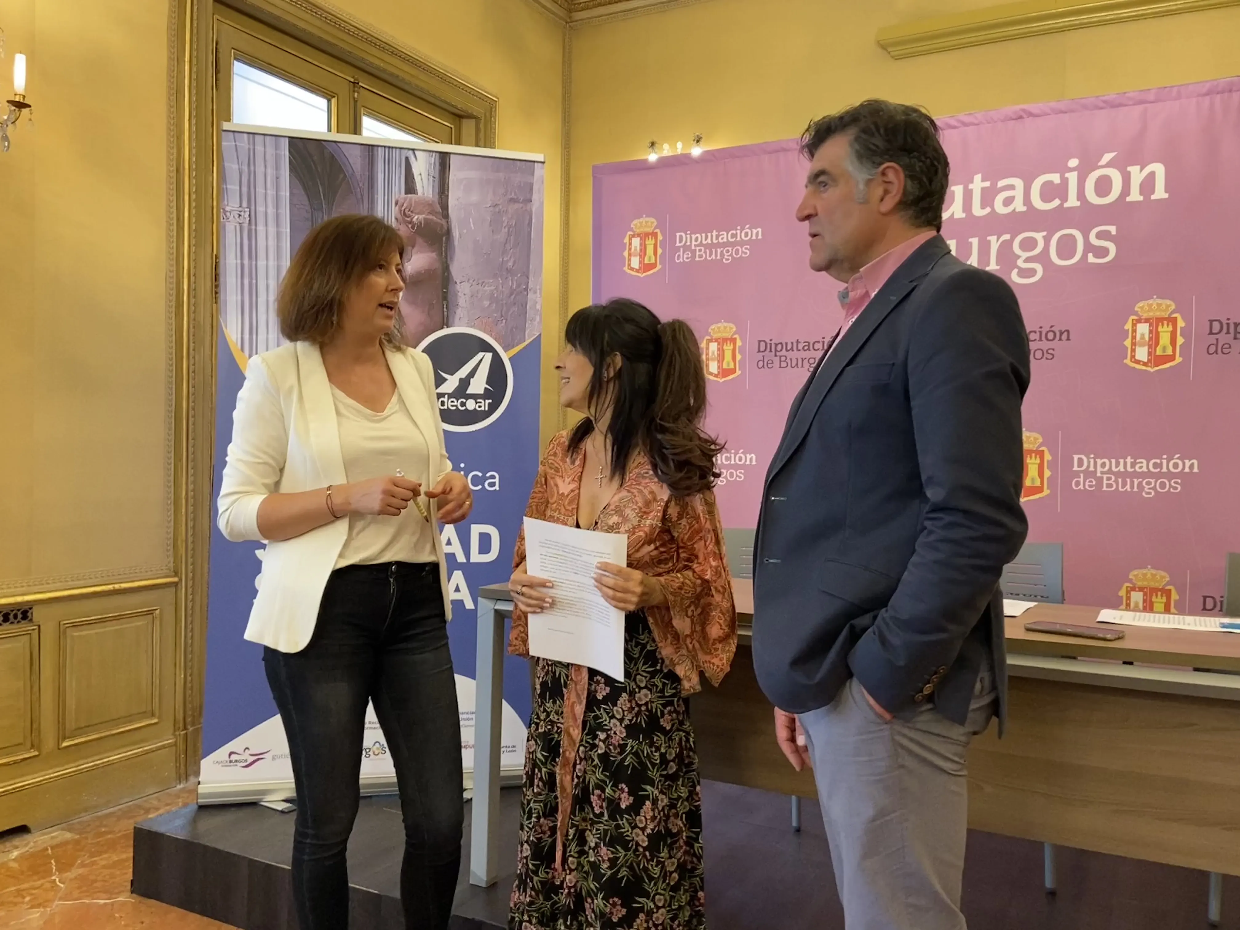 La gerente de ADECOAR, Cristina Merino; el gestor del proyecto, Fernando Gómez; la diputada provincial Inmaculada Sierra, y Beatriz Rodríguez, del Área de Cultura e Innovación Educativa en Fundación Caja de Burgos, han presentado en la Diputación de Burgos la continuación del Ciclo 'Soledad Sonora' tras ser incluido en el Ecosistema Cultural Territorio del Ministerio de Cultura y Deporte.