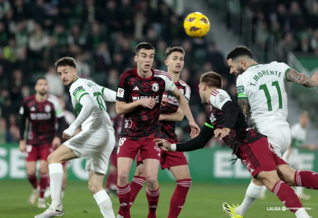 El Burgos salió derrotado de su visita al Elche en el encuentro por entrar en las posiciones de playoff de la clasificación. El equipo de Jon Pérez Bolo supo sufrir los momentos de avanzada ilicitana, con un gran José Antonio Caro, en la primera parte, que se cerró con el empate a cero. Un gol de Pedro Bigas mediado el segundo tiempo y un tanto del exblanquinegro Mourad en el descuento desde el punto de penalti dejaron la victoria en manos de los locales. Con esta derrota, el cuadro burgalesista se mantiene en la décima posición de la tabla.