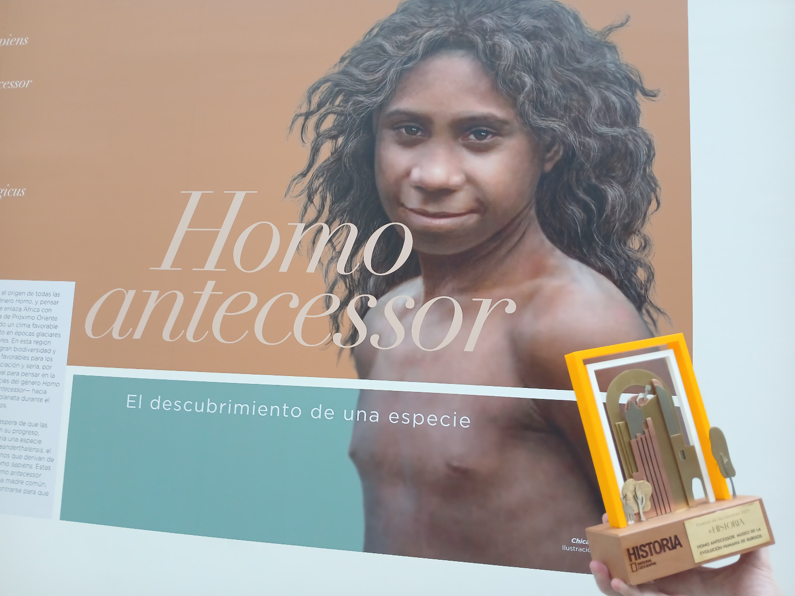 Se trata de la segunda edición de los Premios + Historia de National Geographic que buscan reconocer la divulgación y promoción de la historia, el patrimonio y la cultura. Con esta exposición el Museo de la Evolución Humana conmemoró el 30 aniversario del inesperado descubrimiento en el yacimiento de la Gran Dolina de Atapuerca de los primeros restos de una nueva especie que cambió para siempre la historia del poblamiento del continente euroasiático, el Homo antecessor.