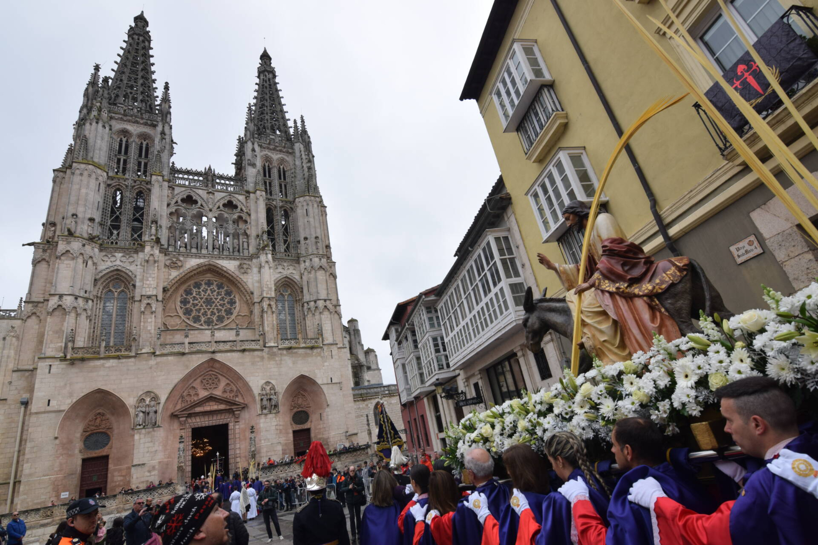 Uno de los grandes protagonistas del día es el paso de Jesús en la borriquilla, una imagen de mediados del siglo XX procedente de los talleres de arte sacro de Olot. Representa la entrada triunfal de Cristo en Jerusalén, un momento que en Burgos se recrea desde 1949 y que, con el paso de los años, se ha convertido en una de las procesiones más concurridas y queridas, especialmente por los más pequeños.