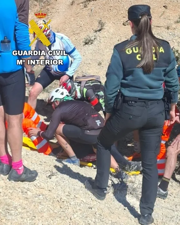 Consecuencia de ello, poco después lograrían localizar al herido, quien se encontraba acompañado por otros cicloturistas que realizaban la ruta en ese momento. Tras una primera asistencia, los agentes pudieron comprobar que presentaba una serie de policontusiones, además de dificultad para respirar y sensación de mareo, lo que evidenciaba la gravedad de la situación.