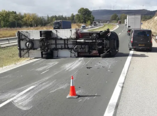 Esta mañana, en torno a las 12.00 horas, se ha producido el acciente de un camión en la AP-1, a la altura del Km 27.1, en Quitanavides, sentido Burgos, según informa la Dirección General de Tráfico.