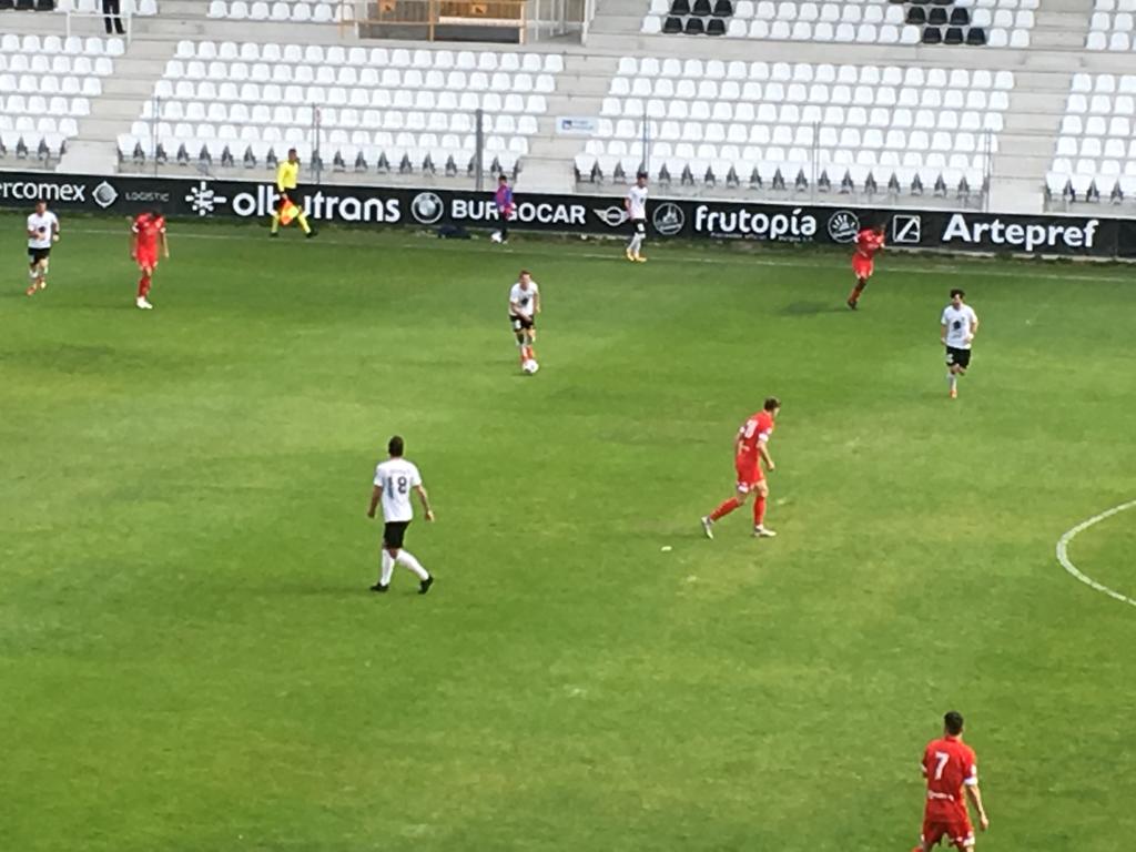 El partido comenzó con igualdad por parte de los dos equipos y sobre todo con respeto entre ambas escuadras que llegaban a esta parte final de la temporada con objetivos muy distintos. La primera aproximación con cierto peligro llegaba por parte de los burgaleses gracias a dos cabezazos consecutivos de Undabarrena.
