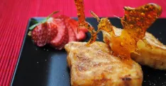 Leche frita con Cantharellus cibarius, tierra de galleta y sopa de frutos rojosIngredientes