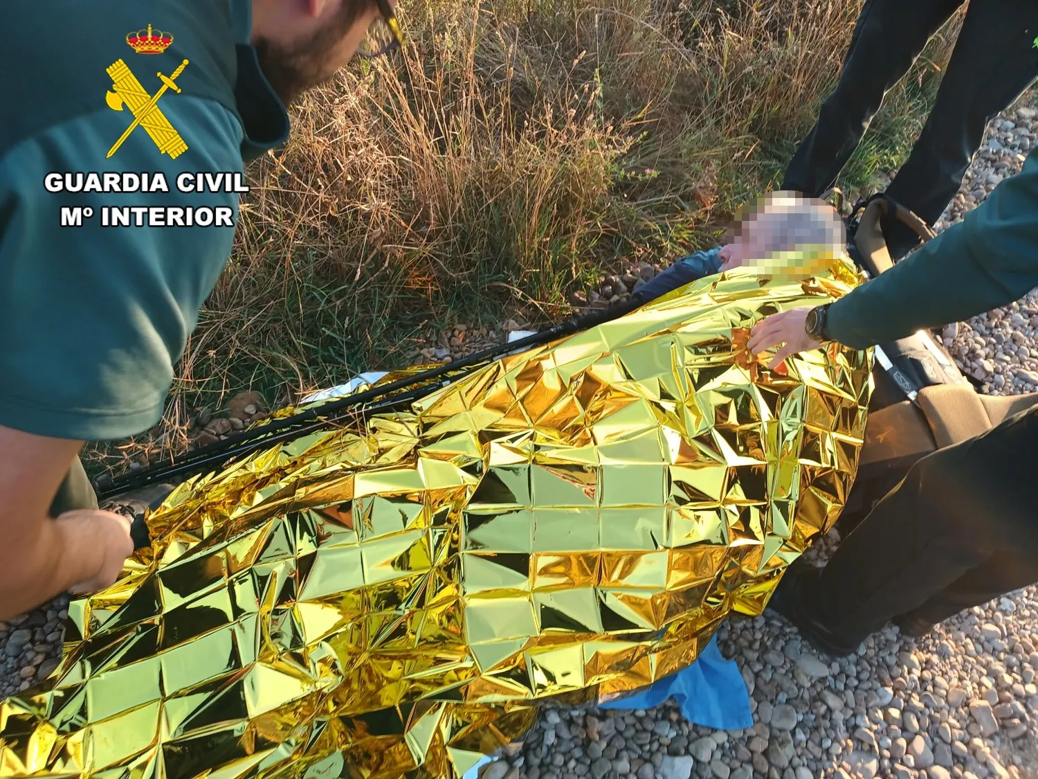 En el momento de la comparecencia le encontraron tumbado en el suelo, sufría convulsiones intermitentes y había vomitado. Los guardias civiles le abrigaron con sus propias ropas y una manta térmica y en coordinación con los servicios sanitarios decidieron trasladarle en el vehículo oficial hasta la localidad más próxima debido a la imposibilidad de aproximación de la ambulancia hasta el paraje, por la complicada orografía y estado del camino.