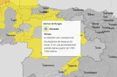 La Agencia Estatal de Meteorología (Aemet) adelanta aviso amarillo por nevadas a varias zonas de montaña de Burgos, a partir de los 1.100 metros, con acumulaciones de hasta cinco centímetros.