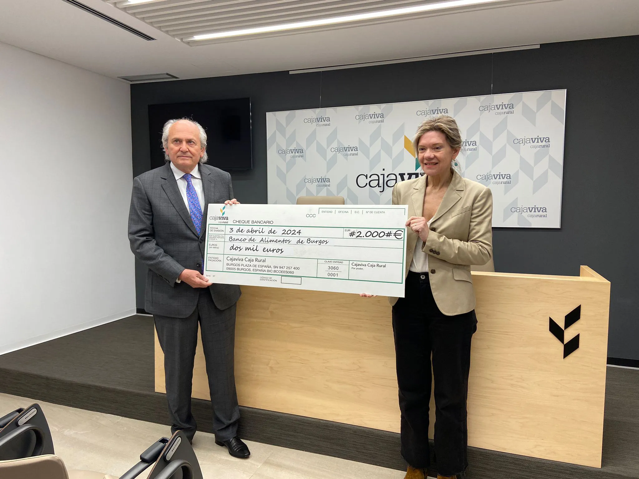 Cajaviva ha hecho entrega a Banco de Alimentos de Burgos de la donación conseguida en el "Día Solidario"