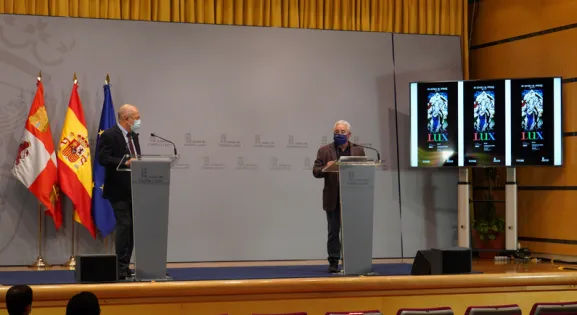 El vicepresidente de la Junta de Castilla y León, Francisco Igea, y el secretario general de la Fundación Las Edades del Hombre, Gonzalo Jiménez, han presentado hoy la imagen promocional de 'LUX', la próxima edición de la exposición de Las Edades del Hombre que en 2021 albergarán Burgos, Carrión de los Condes y Sahagún, con motivo de la celebración del Año Santo Jacobeo y el VIII Centenario de la Catedral de Burgos. Esta vigésima quinta edición de la muestra se desarrollará en tres provincias y cinco sedes expositivas, ejemplos de la arquitectura románica, mudéjar y gótica: la Catedral de Burgos; las iglesias de Santiago y Santa María del Camino, en Carrión de los Condes y el santuario de la Peregrina y la iglesia de San Tirso, en Sahagún.