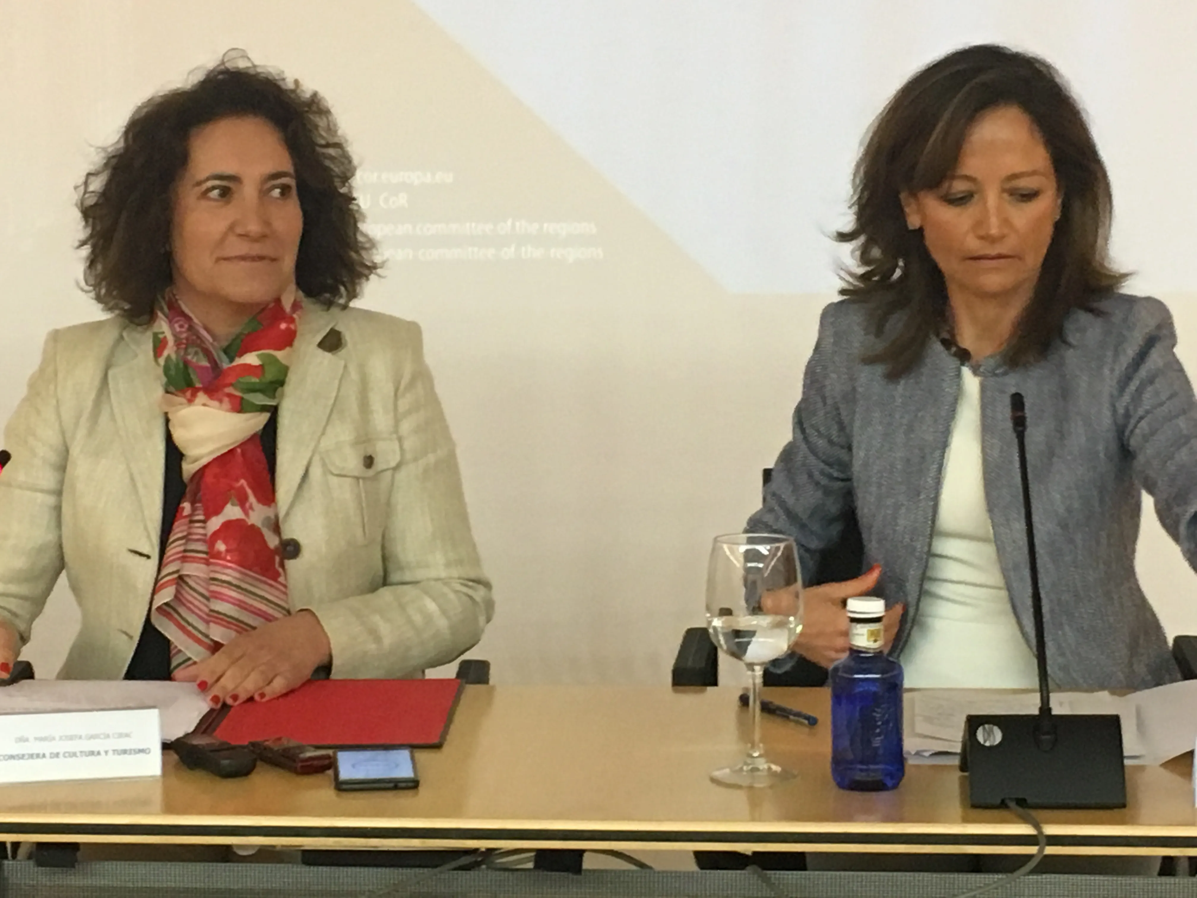 La consejera de Cultura y Turismo, María Josefa García Cirac, y la viceconsejera de Ordenación del Territorio y Relaciones Institucionales, María de Diego, han presentado el seminario del Comité Europeo de las Regiones sobre 'El papel del patrimonio cultural en la construcción de la Europa de los ciudadanos', coincidiendo con la celebración durante 2018 del Año Europeo del Patrimonio Cultural.