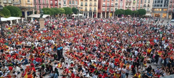 Burgos se ha volcado con la victoria de la selección española. Cientos de personas han abarrotado la Plaza Mayor de la ciudad para ver a través de la pantalla gigante instalada por el Ayuntamiento, la emocionante victoria de España ante Francia por 2-1, que mete a los de Luis de la Fuente en la Final del próximo domingo.