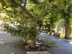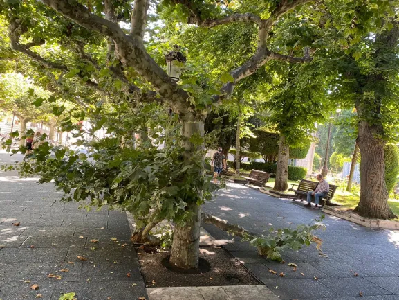 Varias ramas de uno de los árboles que se encuentran en el Paseo de El Espolón de la capital se han desprendido y han caído al suelo.