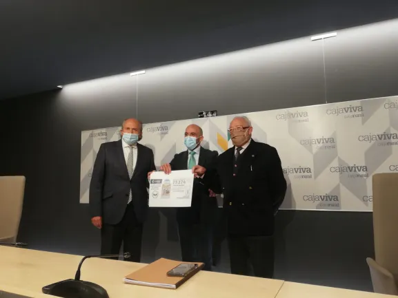 Un año más Cajaviva ha presentado la venta de lotería de Navidad a favor del Banco de Alimentos. Allí han estado presentes el director del área de negocio de Cajaviva Caja Rural, Javier Casado y el presidente y vicepresidente del Banco de Alimentos, Julián Martínez y Miguel Ángel López, respectivamente.