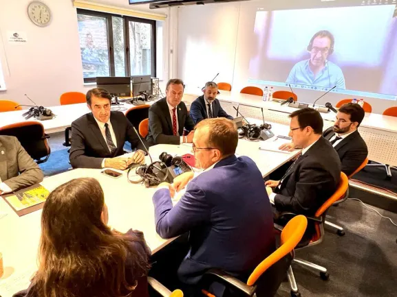 El consejero de Medio Ambiente, Vivienda y Ordenación del Territorio, Juan Carlos Suárez-Quiñones, y los consejeros de Medio Ambiente de Asturias (Alejandro Calvo), Cantabria (Guillermo Blanco) y Galicia (Ángeles Vázquez), se han reunido este mañana en Bruselas, en la Sede de la Comisión Europea, con el comisario de Medio Ambiente, Océanos y Pesca, Virginijus Sinkevincius, para trasladarle una vez más, esta vez personalmente, la problemática del lobo en sus territorios, y especialmente que su actual estado de conservación es "favorable", a diferencia de lo que ha trasladado el Gobierno de España al respecto.