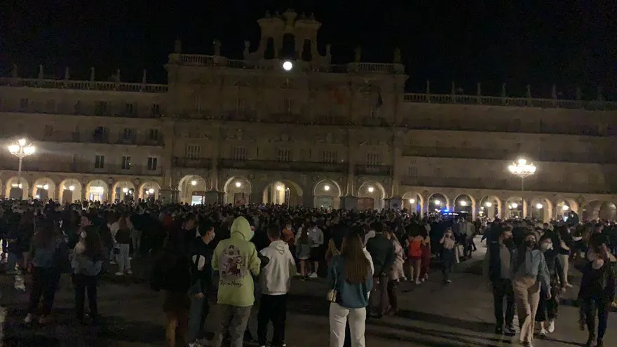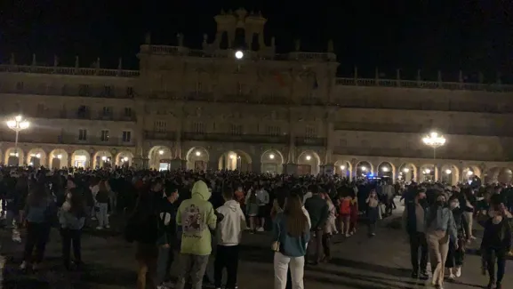 En Salamanca, la principal ciudad universitaria de la comunidad, los jóvenes han abarrotado la Plaza Mayor.