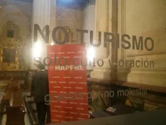 Los feligreses que de 11,30 a 14,30 del 14 de enero han acudido a rezar, en algunos casos lo hacen a diario, a Santa Tecla (donde por cierto si hay calefacción) se han encontrado con que estaba ocupada, cartelería incluida por un acto de la empresa aseguradora MAPFRE. Desconocemos si ha existido compensación económica de por medio o tal vez cuando uno es Patrono de Honor tiene derecho a hacer gratuitamente varios "bolos" en la instalación. En la fotografía puede observarse la advertencia del Cabildo de que esa capilla es exclusivamente para el culto y la oración.