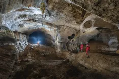 Ojo GuareñaEl Complejo Kárstico de Ojo Guareña es, con sus casi cien kilómetros de desarrollo, el conjunto de cuevas más extenso de la Península Ibérica y puede incluirse entre los diez mayores del mundo. Además de su indiscutible interés espeleológico, en su exterior se localizan varios enclaves de un alto valor natural y paisajístico. Diez rutas circulares de senderismo, perfectamente señalizadas, permiten recorrer todo el Monumento Natural. En total, son 97 km que se acercan, entre otros lugares, hasta el Alto de la Concha, Pico del Cuerno, Cascada de la Mea, Fuente de Ulemas, Ermita de San Bernabé, Ojo del Guareña y los Canales de Dulla. También se puede visitar el interior de la Cueva de la Ermita.