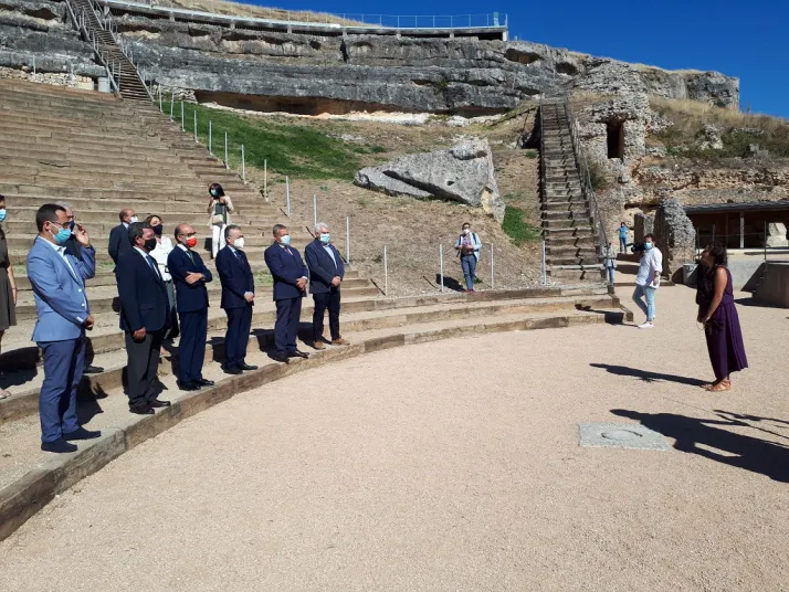 El consejero de Cultura y Turismo, Javier Ortega, ha presentado junto al presidente de la Diputación Provincial de Burgos, César Rico, las obras de recuperación y puesta en valor del teatro romano de Clunia, único testigo de la antigua ciudad romana y de la civilización romana de este territorio.