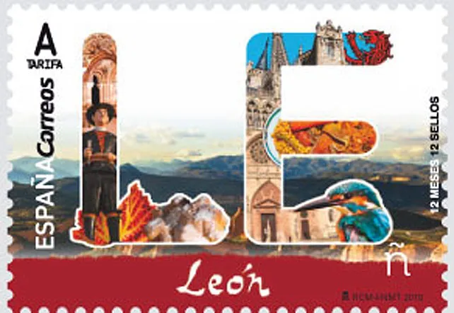 El sello dedicado a León incluye imágenes de parajes, monumentos e incluso una fotografía de un martín pescador. Tiene un valor facial de 55 céntimos, permite el envío de una carta normalizada dentro de España, está impreso sobre papel autoadhesivo y su tirada es ilimitada.