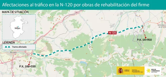 A partir del próximo 18 de septiembre a las 08:00 h se cortará la circulación por un carril, habilitándose el tráfico alternativo por sentidos en el contiguo, en las travesías de Redecilla del Camino, Belorado, Villafranca Montes de Oca, Ibeas de Juarros y Castañares. Está previsto que las afectaciones duren unas dos semanas.