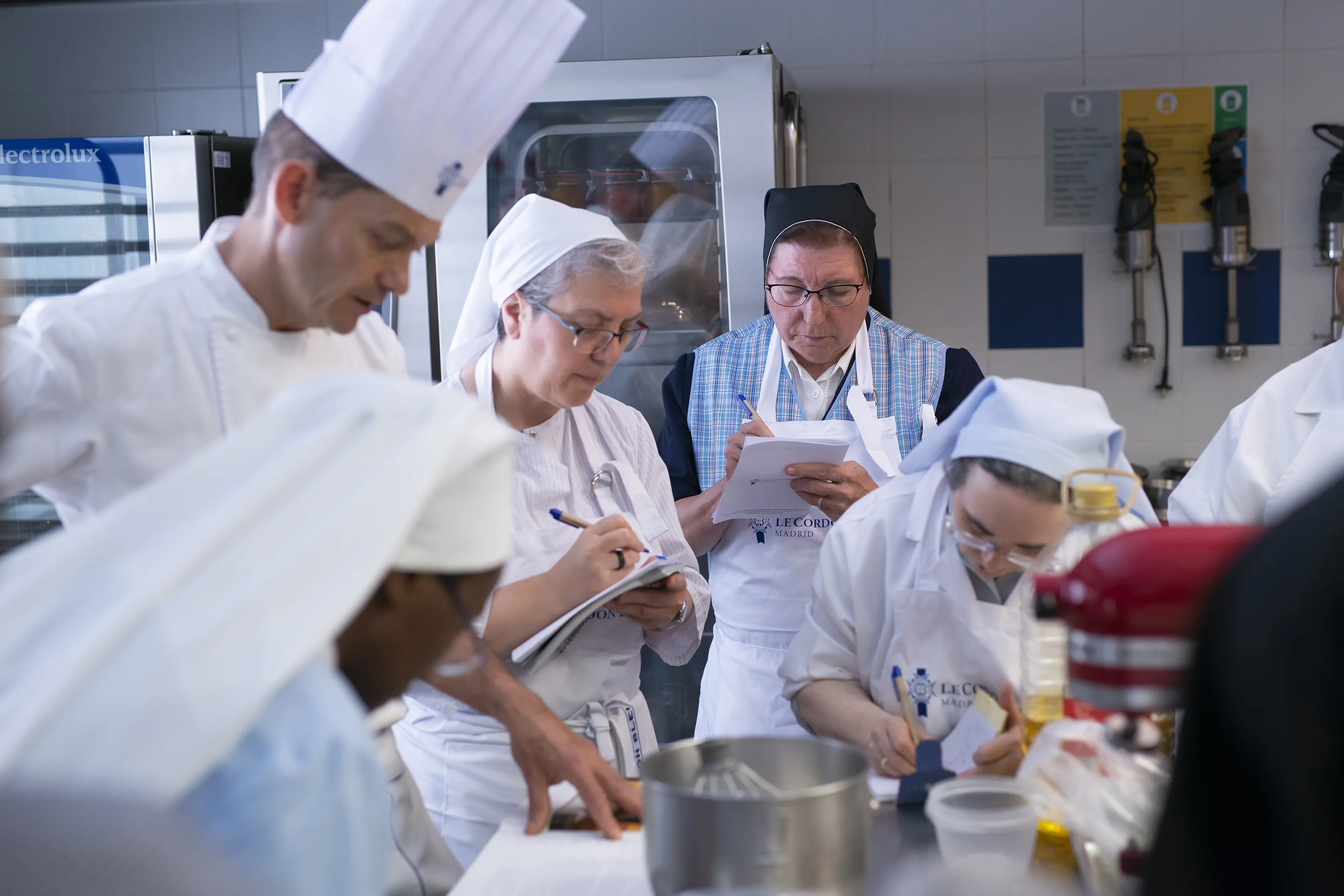 El pasado 29 de junio un grupo de 13 religiosas de varios monasterios de clausura de España visitaron la escuela de alta cocina de la Universidad Francisco de Vitoria, Le Cordon Bleu Madrid, para participar en un taller formativo organizado en colaboración con la Asociación Contemplare. Las monjas proceden de diversos monasterios como son Las Clarisas de Villarrubia de los Ojos de Ciudad Real; Carmelitas Descalzas de Toro, Zamora; Cistercienses de Casarrubios del Monte en Toledo; Benedictinas de Sahagún de León o Cistercienses de Villamayor de los Montes en Burgos.