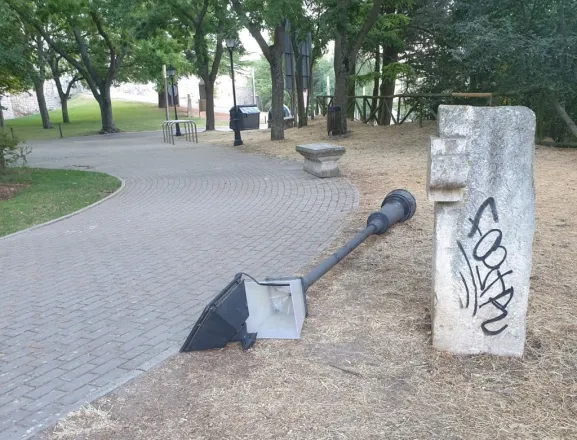 Esta vez han sido las farolas, las que han sido objeto de los actos vandálicos que se han producido una noche más en el Castillo de Burgos.