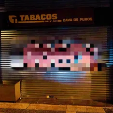 Agentes de la Policía Local de Burgos han denunciado a dos jóvenes por un deslucimiento de bien inmueble, al pintar con spray la puerta metálica de un estanco.