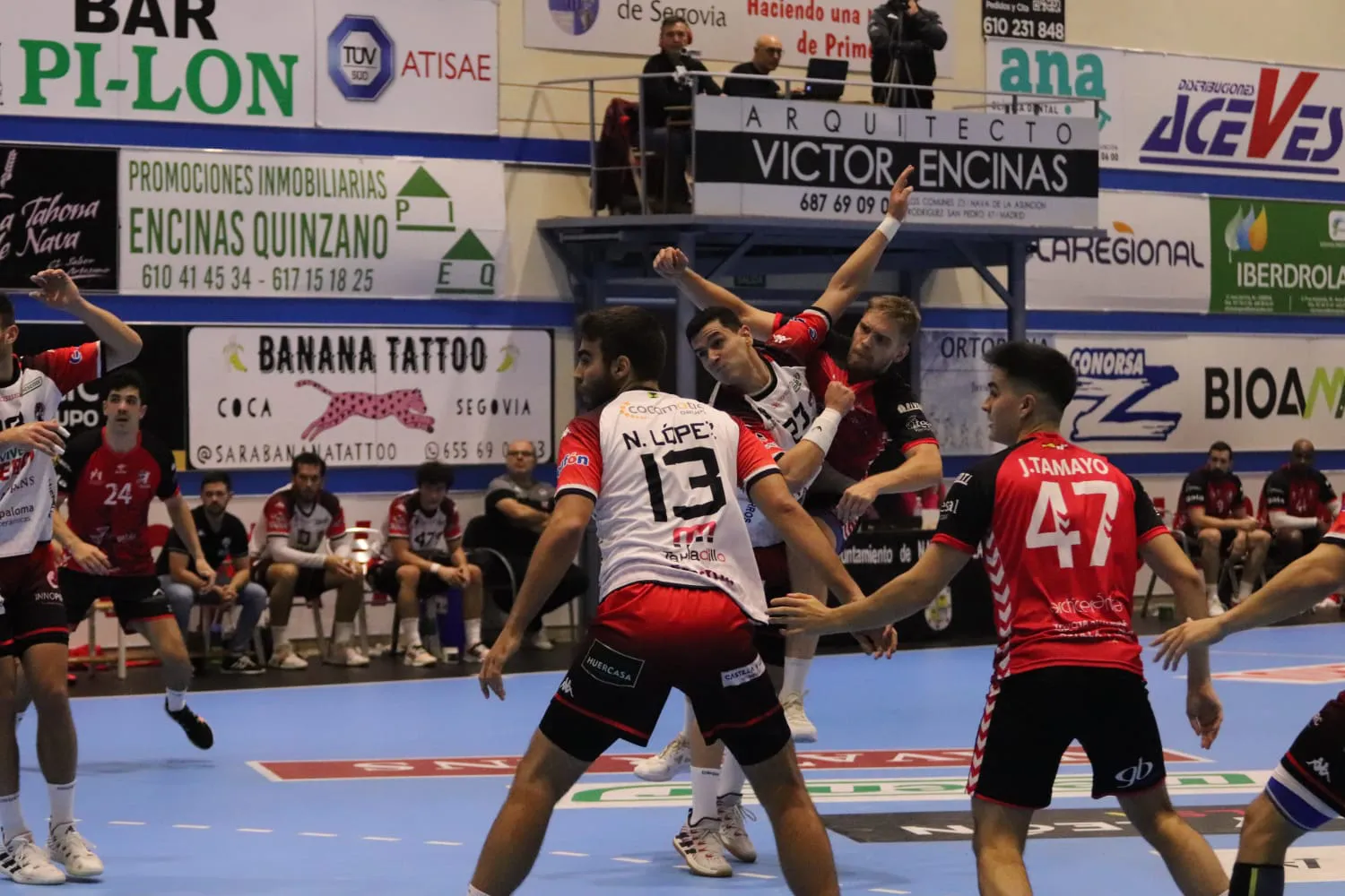 Durante los últimos minutos de la primera parte, aunque Nava intentaba remontar y llegar al descanso con la mínima diferencia de goles posibles, un gol de Lander tras un tiempo muerto de Nacho González en los últimos segundos, hacía llegar al descanso 14-16 a favor del UBU San Pablo Burgos.
