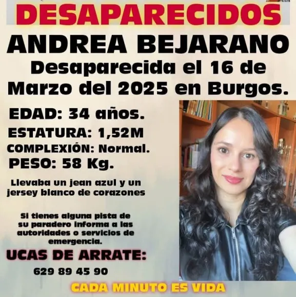 La familia de Andrea Bejarano ha denunciado la desaparición de esta mujer en la Policía Nacional esta mañana. La última vez que se la vio fue en la jornada de ayer, 16 de marzo, en Burgos.