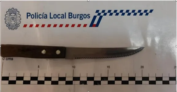 integridad física de los allí presentes, hicieron uso del spray de defensa personal que tienen de dotación policial procediendo, ya habiendo tirado el cuchillo, a su detención.
