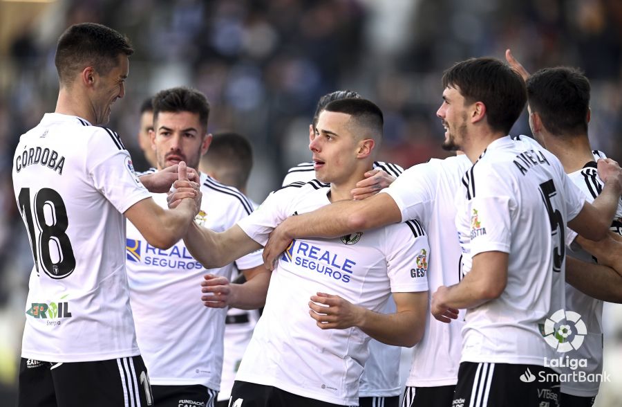 El Burgos salió bien al partido, presionando en medio campo y llevando la iniciativa. Y el resultado fue rápido porque a los 7 minutos una buena combinación entre Areso y Gaspar Campos finaliza con un gran remate cruzado de este último desde fuera del área que lleva el balón al fondo de las mallas. Un auténtico golazo que puso por delante al Burgos, aunque la jugada fue examinada por el VAR por posible fuera de juego de Areso, que se comprobó que estaba en posición correcta.
