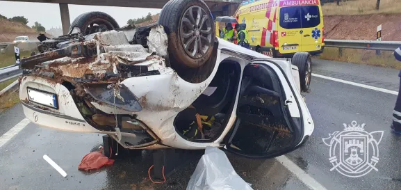 Sobre las 18 horas de este domingo, se recibian varias llamadas en la sala de operaciones del 1-1-2 Castilla y León que avisaban del vuelco de un turismo ocurrido en el kilómetro 200 de la autovía A-1, sentido Burgos, a la altura de Lerma (Burgos), a consecuencia del cual habían resultado heridos los dos ocupantes del vehículo, uno de los cuales además se encuentraba atrapado en el interior del turismo.