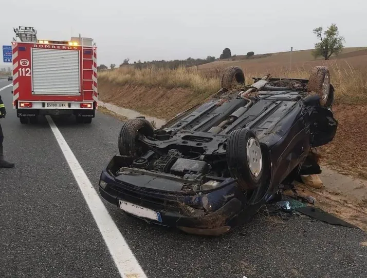 Dos personas han tenido que ser atendidas tras el vuelco de su vehículo particular en la A1, en el kilómetro 203 de la nacional, sentido Madrid, a la altura de Villalmanzo, a consecuencia del cual han resultado heridas las dos personas que viajan en él, un varón y una mujer que se encuentran conscientes pero no pueden abandonar el vehículo poe su propio pie.