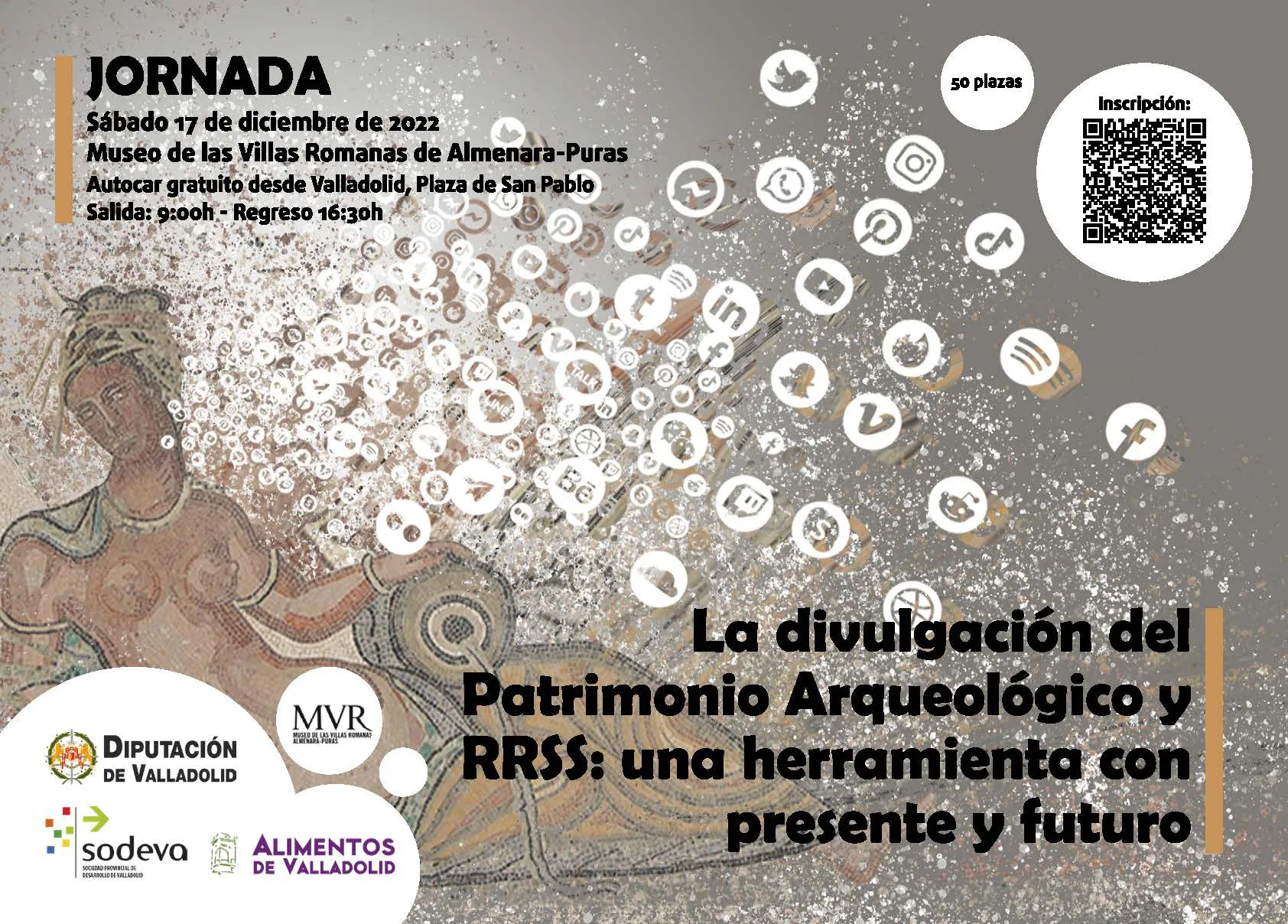 Las distintas intervenciones programadas permitirán conocer algunos ejemplos de comunicación por RRSS, que han demostrado ser muy eficientes; así como reflexionar sobre la variedad de los agentes y las estrategias implicados en la elaboración de una divulgación eficiente, amplia y plural del Patrimonio Arqueológico.
