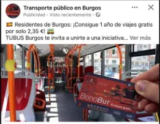 Según ha informado el Servicio Municipalizado de Autobuses, se ha identificado una publicación fraudulenta que circula en redes sociales bajo el nombre "Transporte público en Burgos". En ella se promociona una supuesta oferta en la que se ofrecen viajes ilimitados durante un año por solo 2,35 euros.