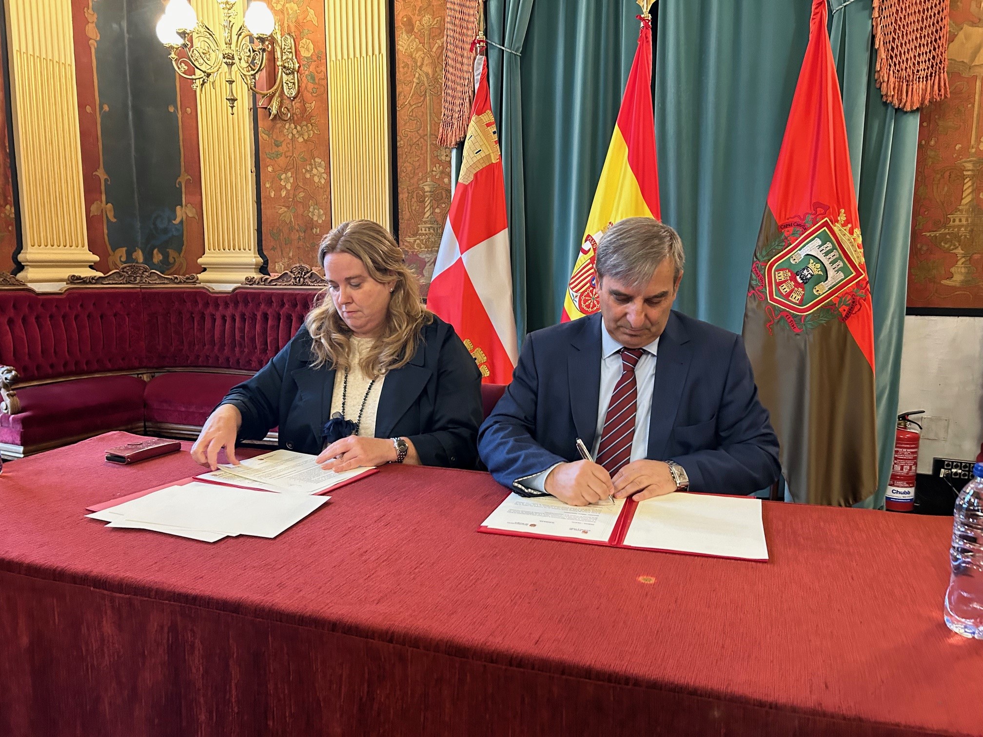 El consejero de Movilidad y Transformación Digital, José Luis Sanz Merino, y la alcaldesa de Burgos, Cristina Ayala, han firmado el protocolo de colaboración entre la Junta y el Consistorio burgalés del transporte metropolitano, un convenio que facilita la movilidad desde la ciudad hasta los distintos Ayuntamientos de la provincia