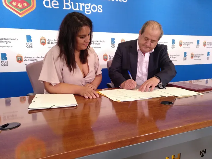La concejala de Sanidad del Ayuntamiento de Burgos, Estrella Paredes y el representante de la Asociación Alcer para la lucha contra las enfermedades renales, Antonio Ortiz, han firmado un convenio de colaboración por valor de 12.000 euros.