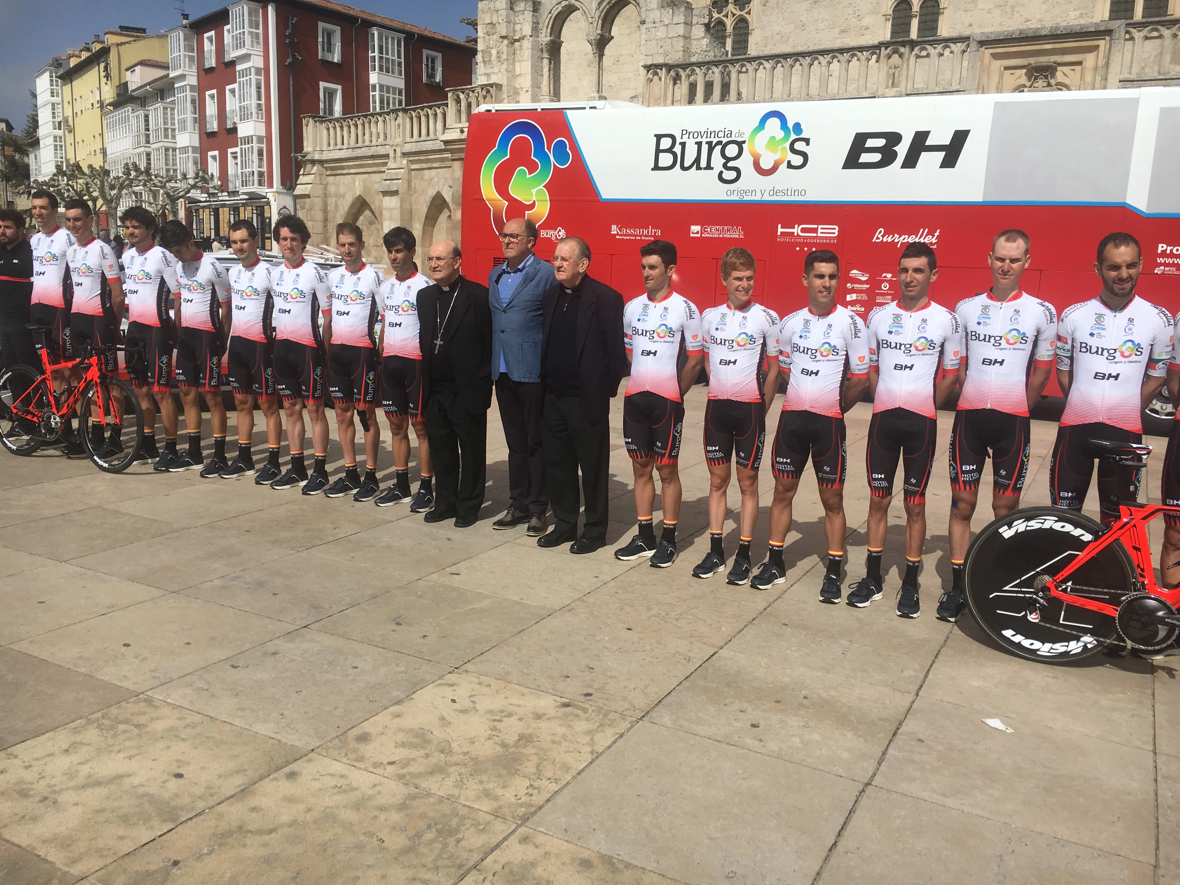 El equipo ciclista Burgos BH se ha presentado oficialmente teniendo como marco la Plaza del Rey San Fernando, en la Catedral. Además de los ciclistas, las bicicletas y los vehículos que están utilizando esta temporada en la categoría Continental-Profesional han creado expectación entre el público que por allí estaba.