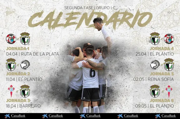El 25 de abril, los de Julián Calero recibirán al Zamora en el Plantío, la semana siguiente jugarán en el campo del Unionistas y cerrarán esta segunda fase en el Plantío el 9 de mayo ante el Celta B.