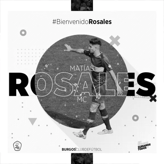El Burgos Club de Fútbol y el argentino Matías Rosales han llegado a un acuerdo para la incorporación del mediocentro a la disciplina blanquinegra. Rosales, de 20 años, llega a El Plantío procedente del Club Atlético Boca Juniors y es internacional con la albiceleste en categoría sub'20.