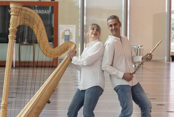El 'Dúo Telyn' está formado por Marianne Ten Voorde, arpa y José Lanuza, flauta, que ofrecerán un programa ameno y didáctico para toda la familia.