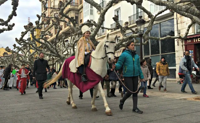 Con el tradicional paseo por el Centro de la capital y la recepción en el Ayuntamiento, el nuevo Obispillo, Diego González, de nueve años, ha ejercido ya como Obispillo y ha pronunciado un discurso en el palco del Ayuntamiento frente a bastantes personas que se acercaron a la Plaza Mayor.
