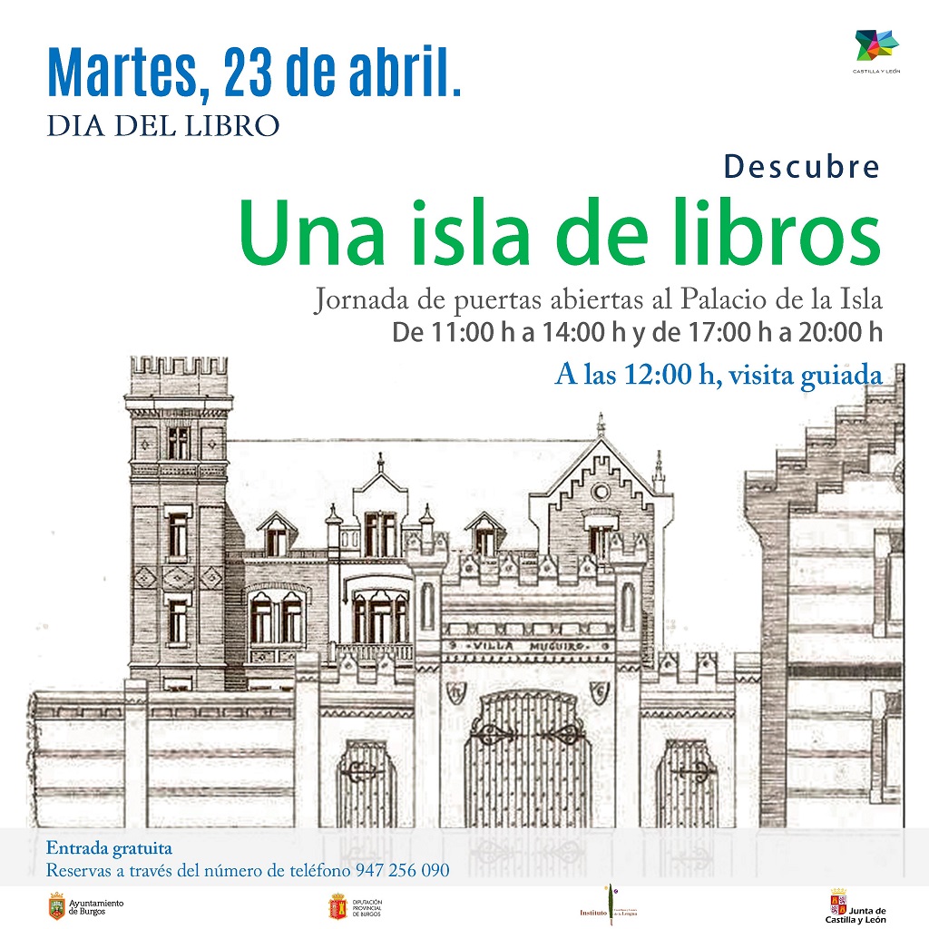 El Instituto Castellano y Leonés de la Lengua se suma a la conmemoración del 'Día Internacional del Libro' que se celebra el martes, 23 de abril, con la apertura de su sede, el Palacio de la Isla de Burgos, en horario de 11:00 a 14:00 horas y de 17:00 a 20:00 horas. La propuesta 'Una isla de libros' contempla una jornada de puertas abiertas que busca facilitar una aproximación a la historia del centenario inmueble de la capital burgalesa y divulgar el trabajo de esta institución en el ámbito de la investigación de los orígenes del español y en la promoción de la literatura de la Comunidad. Por la mañana, a las 12:00 horas, se programa una visita guiada con la colaboración de la Asociación de Guías de Burgos.