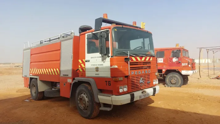 El vehículo donado por Bomberos de Burgos es un camión autobomba nodriza pesada, con una cisterna con capacidad para 9.000 litros de agua, de marca Pegaso, modelo 1223, que conserva la matricula BU-7355-K, y que tenía 34 años de antigüedad cuando se trasladó desde Alicante a Orán, en una caravana solidaria de apoyo al pueblo saharaui que llegó con su cargamento hasta los campamentos de refugiados de Tinduf.