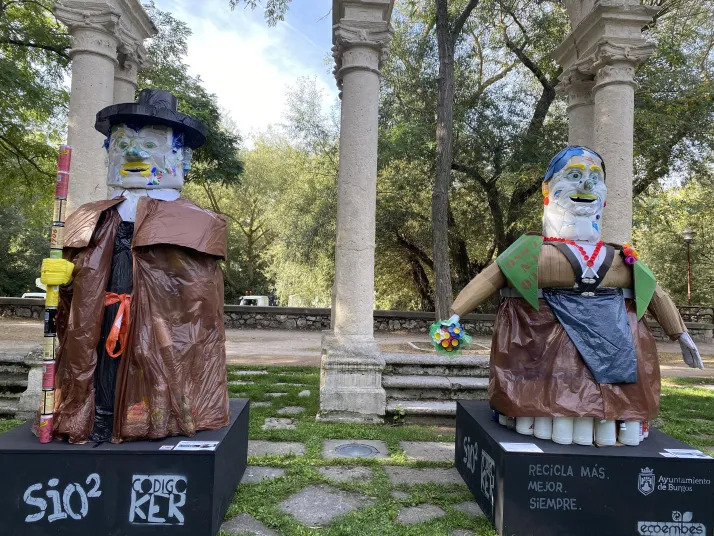 Josué TemiñoLas esculturas estarán ubicadas hasta el día 21 de septiembre en los Arcos de Castilfalé del Paseo de la Isla. Las cinco obras de arte, que representan el Arco de Santamaría, el Gigantillo y la Gigantilla, la Catedral de Burgos y el Cid Campeador, serán de nuevo depositadas en sus respectivos contenedores para ser recicladas.