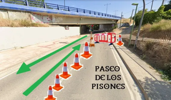 El Paseo de los Pisones corta el tráfico del carril derecho en sentido centro ciudad