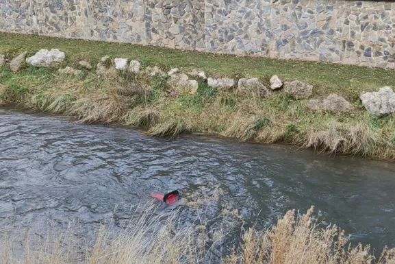 Un lector de este digital nos remite una fotografía en la que se puede ver un cono de obra flotando sobre el cauce del río Vena a su paso por la capital burgalesa, lo que denota que algunos siguen considerando que los ríos son basureros o estercoleros donde tirar todo aquello que a uno le sobre o ya no hace falta.