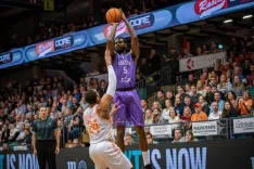 La incidencia de Oliver Stevic en el juego del San Pablo Burgos fue clave en el arranque del último cuarto, que aportaba desde el rebote y en la anotación (72-80). Aunque los castellanos habían obtenido una buena renta con la que encarar el final del duelo, Jordan Davis no estaba por la labor de dejar que cerraran el choque tan pronto. Sus puntos constantes desde todas las facetas ofensivas mantenían con vida a los alemanes (82-85). Una canasta de Tokoto y un triplazo de Benite volvían a poner tierra de por medio (83-91), pese a lo que Davis y Young reducían distancias (87-91). Dos tiros libres convertidos por el brasileño para los de Peñarroya terminaban con las opciones locales. El cuadro burgalés sumaba su cuarto triunfo de la BCL (87-93).