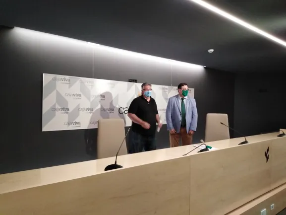 Germán Martínez, gerente de Fundación Caja Rural Burgos y Fernando Esteve director del torneo , han presentado el XII torneo de tenis en silla de ruedas en Memorial a Oliver Puras.
