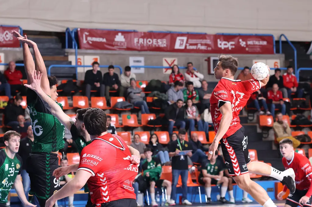 Ernesto y Javi Domingo, conscientes del esfuerzo rival, pusieron toda la carne en el asador para seguir ilusionando al respetable de El Plantío, que se puso de pie con la finta de Javi Rodríguez para forzar un siete metros que a la postre anotaría Jaime González (26-29).