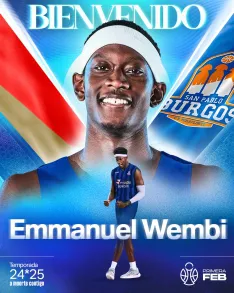 Emmanuel Wembi (24/10/1997, Charlotte, Carolina del Norte, Estados Unidos) competirá junto al Silbö San Pablo Burgos en la temporada 2024/25 de Primera FEB y de Copa España. El pívot de 2,05m cuenta con pasaporte de la República Democrática del Congo y dispone de experiencia en Primera FEB, donde compitió un tramo de la pasada campaña.